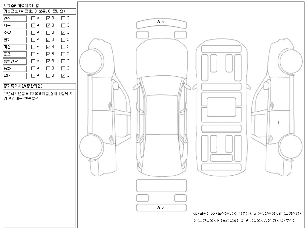 22년식21년등록,PS유격이음,실내내장제 오염,엔진이음/변속충격,